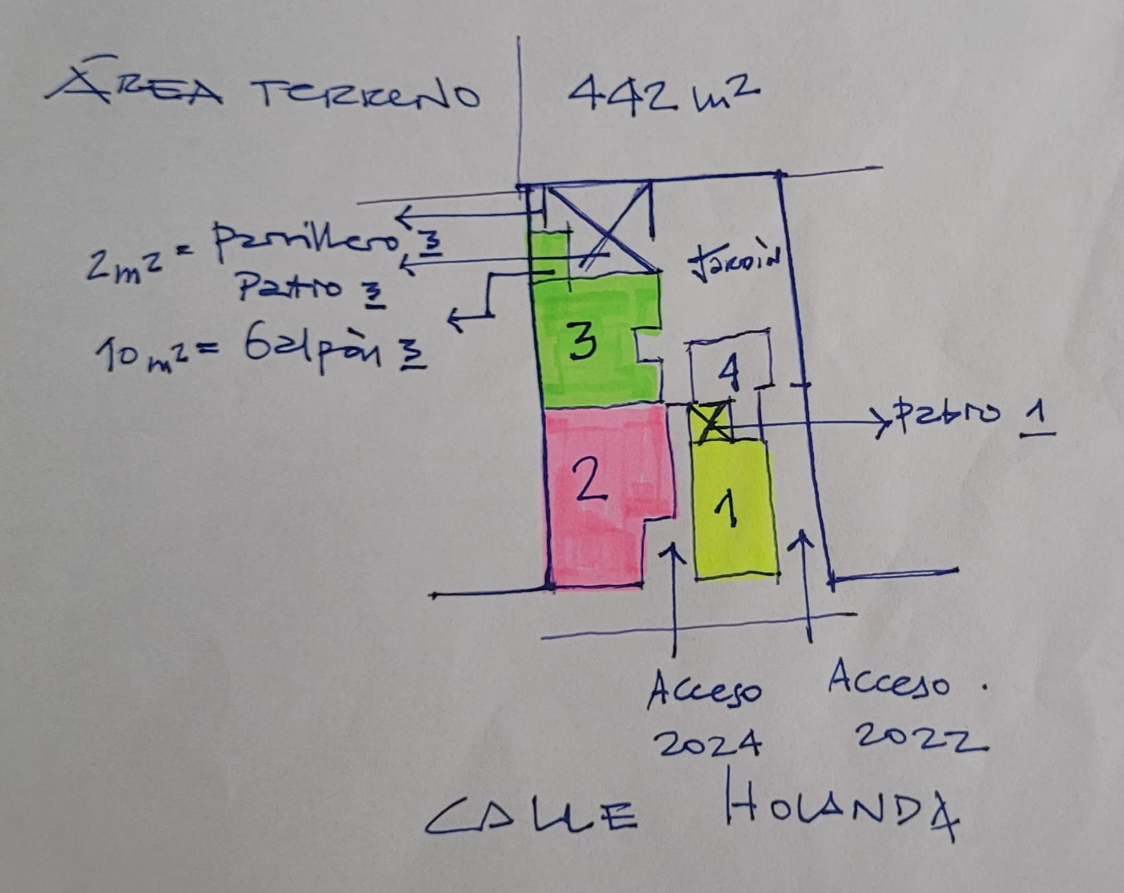 4 apartamentos en un solo padrón. Derechos posesorios, con capacidad de escriturar a posteriori. Vea croquis en foto 2 para mejores referencias: